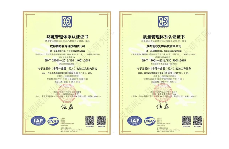基于对质量管理体系规范的贯彻执行,目前研究院旗下全系技术服务均获得ISO9001认证,除晶圆切割外还可提供功率半导体研发、可靠性测试及失效分析等项目。