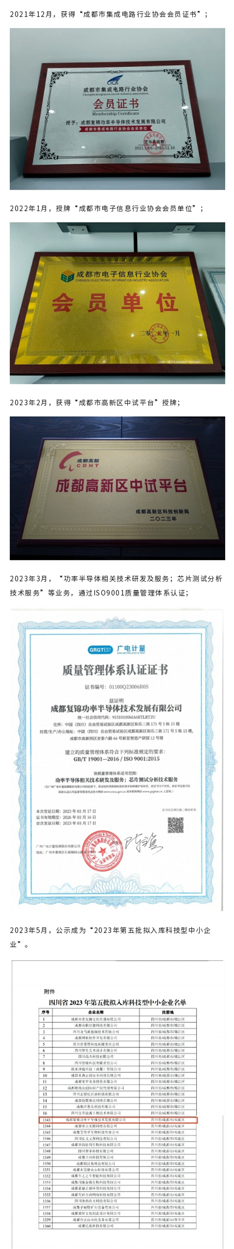复锦功率半导体现有荣誉盘点